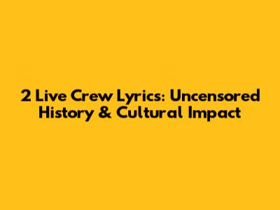 2 Live Crew Lyrics: Uncensored History & Cultural Impact