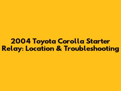 2004 Toyota Corolla: Starter Relay Location & Troubleshooting