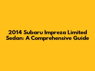 2014 Subaru Impreza Limited Sedan: A Comprehensive Guide