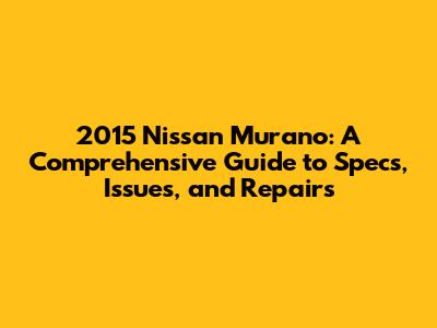 2015 Nissan Murano: Specs, Problems, And Repair Insights