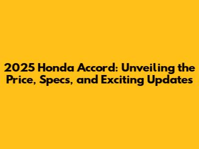 The 2025 Honda Accord is shaping up to be a highly anticipated release. From the 2025 Honda Accord price to the exciting new features and specs, this sedan promises to deliver a blend of reliability, technology, and style. Stay informed, do your research, and prepare to welcome the new Accord when it hits the market. I know I can't wait to see it! Remember to always stay updated to make informed decisions and enjoy the journey of finding the perfect vehicle.