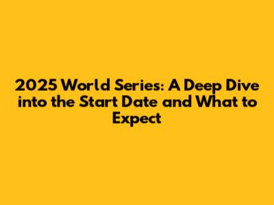 2025 World Series: Start Date & What To Expect