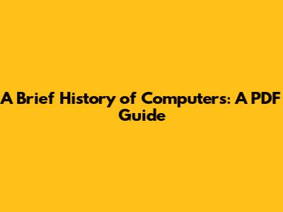 A Brief History Of Computers: A PDF Guide