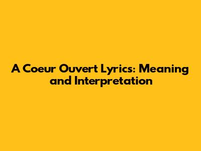 A Coeur Ouvert Lyrics: Meaning And Interpretation
