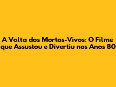A Volta dos Mortos-Vivos é um clássico incontestável do cinema de terror. O filme mistura terror, comédia e crítica social de forma magistral. Com personagens memoráveis, cenas icônicas e um legado duradouro, o filme continua a assustar e divertir fãs de terror em todo o mundo. Se você é fã do gênero, não pode deixar de assistir a A Volta dos Mortos-Vivos dublado. É uma experiência cinematográfica que vale a pena ser vivida. O filme é um tesouro do cinema de terror e garante boas risadas e sustos.