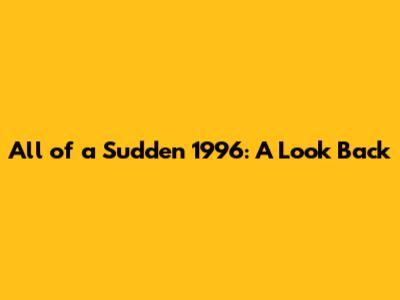 All Of A Sudden 1996: A Look Back