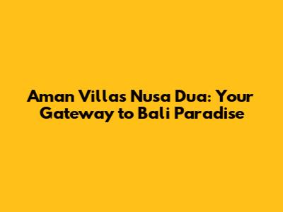 Aman Villas Nusa Dua: Your Bali Luxury Escape