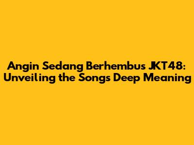 Hey guys! Have you ever listened to JKT48's song "Angin Sedang Berhembus" and felt like there's more to it than just a catchy tune? Well, you're absolutely right! This song isn't just another J-Pop-inspired track; it's packed with meaning and emotion. Let's dive deep into the lyrics and explore what makes this song so special. Understanding the meaning behind "Angin Sedang Berhembus" can totally change how you experience the song.