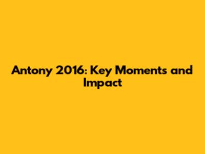 Antony 2016: Key Moments And Impact