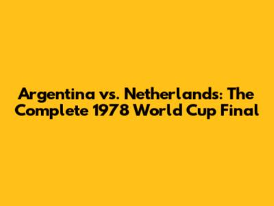 Argentina Vs. Netherlands: The Complete 1978 World Cup Final