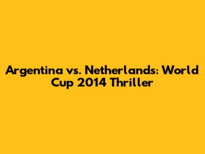 Argentina Vs. Netherlands: World Cup 2014 Thriller