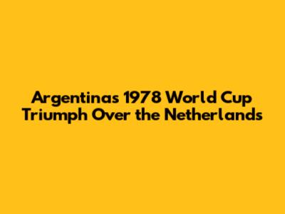 Argentina's 1978 World Cup Triumph Over The Netherlands