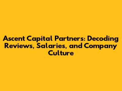 Ascent Capital Partners: Reviews, Salaries & Culture