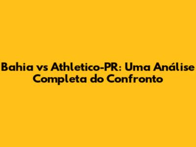 Bahia Vs Athletico-PR: Uma Análise Completa Do Confronto