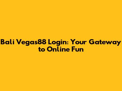 Bali Vegas88 Login: Your Gateway To Online Fun