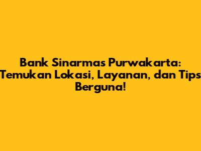 Bank Sinarmas Purwakarta: Lokasi, Layanan, Dan Tips