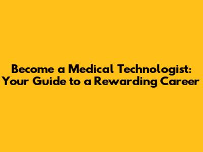 Become A Medical Technologist: Your Guide To A Rewarding Career