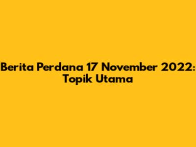 Berita Perdana 17 November 2022: Topik Utama