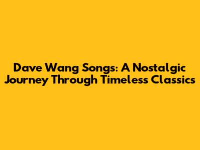 Best Dave Wang Songs: A Nostalgic Journey