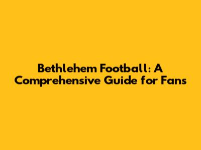 Bethlehem Football: A Comprehensive Guide For Fans