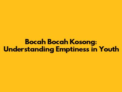 Bocah Bocah Kosong: Understanding Emptiness In Youth