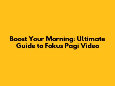 Boost Your Morning: Ultimate Guide To Fokus Pagi Video