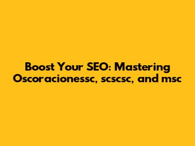 Boost Your SEO: Mastering Oscoracionessc, Scscsc, And Msc