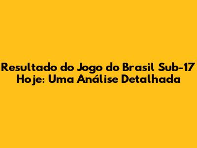 Brasil Sub-17: Resultado Do Jogo De Hoje