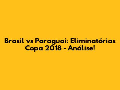 Brasil Vs Paraguai: Eliminatórias Copa 2018 - Análise!