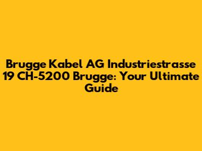 Hey guys! Are you trying to find Brugge Kabel AG located on Industriestrasse 19 in CH-5200 Brugge? Well, you've come to the right place! In this article, we're diving deep into everything you need to know about this location. Let’s explore Brugge Kabel AG and what makes it such an important industrial hub. Whether you're planning a visit, seeking business contacts, or just curious about the area, this guide is designed to provide you with all the essential details. Understanding the significance of Brugge Kabel AG involves more than just knowing its address; it’s about appreciating its role in the local economy and its contributions to the broader industry. We'll cover its history, the types of products and services it offers, and how it interacts with the community. So, stick around as we unravel the layers of Brugge Kabel AG and give you an insider's look at this key industrial player. We'll also touch on how to navigate the area, nearby amenities, and what to expect when you visit. By the end of this guide, you’ll have a comprehensive understanding of Brugge Kabel AG and its surroundings. So, let’s get started and explore what makes Brugge Kabel AG a notable landmark in Brugge. Think of this as your personal tour guide to all things Brugge Kabel AG!