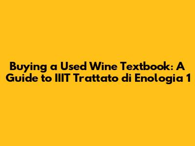 Buying a used IIIT Trattato di Enologia 1 is a great way to access this valuable resource while saving money and being environmentally conscious. By knowing where to look, what to look for, and considering the benefits, you can find a used copy that meets your needs and budget. Happy winemaking!