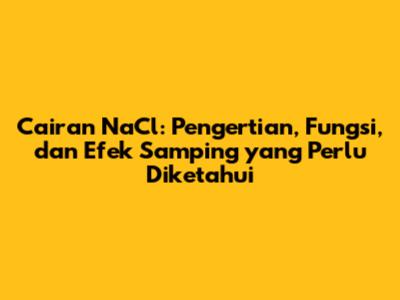 Cairan NaCl: Pengertian, Fungsi, Dan Efek Samping Yang Perlu Diketahui
