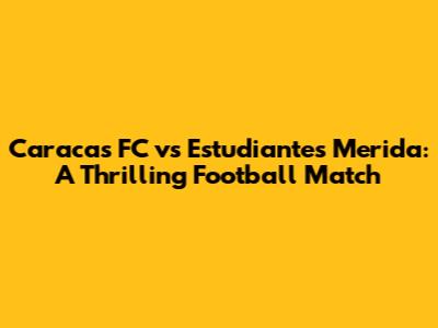 Caracas FC Vs Estudiantes Merida: A Thrilling Football Match