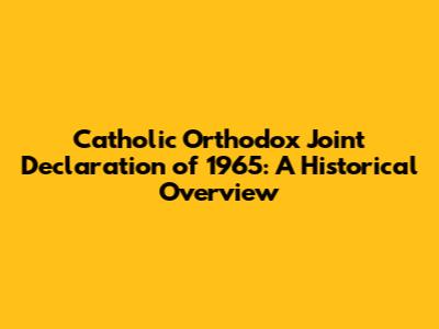 Catholic Orthodox Joint Declaration Of 1965: A Historical Overview