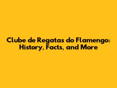 Clube De Regatas Do Flamengo: History, Facts, And More