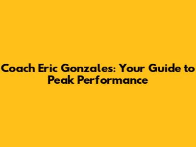 Coach Eric Gonzales: Your Guide To Peak Performance