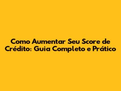 Como Aumentar Seu Score De Crédito: Guia Completo E Prático
