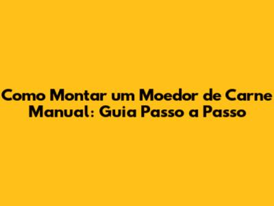 Como Montar Um Moedor De Carne Manual: Guia Passo A Passo