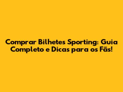 Comprar Bilhetes Sporting: Guia Completo E Dicas!