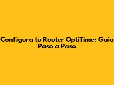 Configura Tu Router OptiTime: Guía Paso A Paso