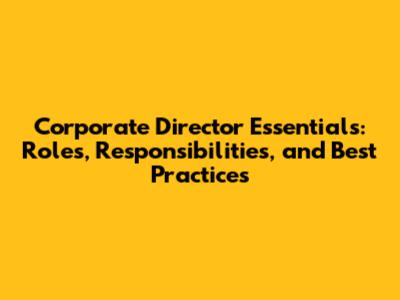 Corporate Director Essentials: Roles, Responsibilities, And Best Practices