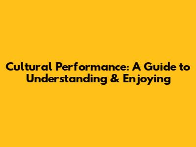 Cultural Performance: A Guide To Understanding & Enjoying