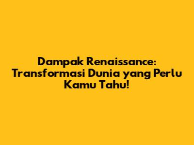 Dampak Renaissance: Transformasi Dunia Yang Perlu Kamu Tahu!
