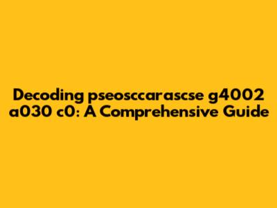 Decoding Pseosccarascse G4002 A030 C0: A Comprehensive Guide