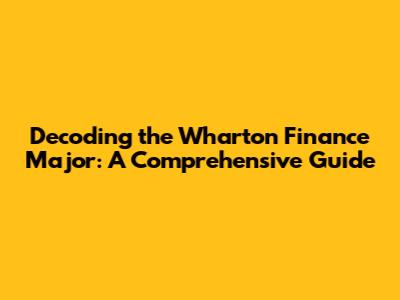 Decoding The Wharton Finance Major: A Comprehensive Guide