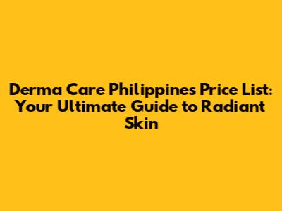 Derma Care Philippines Price List: Your Ultimate Guide