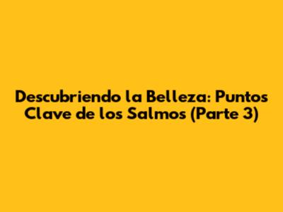 Descubriendo La Belleza: Puntos Clave De Los Salmos (Parte 3)