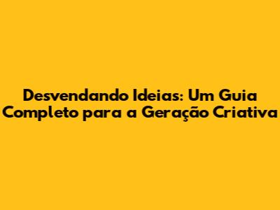 Desvendando Ideias: Um Guia Completo Para A Geração Criativa