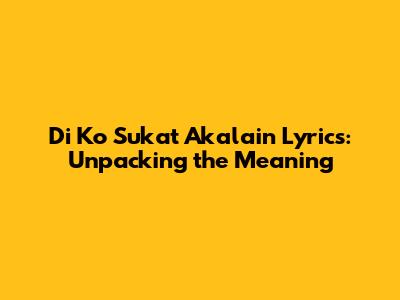 Di Ko Sukat Akalain Lyrics: Meaning & Artist