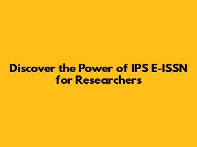 Discover The Power Of IPS E-ISSN For Researchers